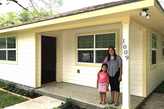 Mother Norma Rodriguez and daughter Lupita proudly stand in front of their new home they help build with Bryan/College Station Habitat for Humanity. Many nonprofits and government agencies, including TDHCA, were able to come together and help Norma and Lupita, as well as her husband and son, achieve the dream of homeownership.